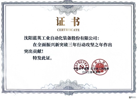 5月13日,遼寧省委省政府對(duì)在全面振興新突破三年行動(dòng)攻堅(jiān)之年作出突出貢獻(xiàn)的241戶企業(yè)予以通報(bào)表?yè)P(yáng)。其中,全省共有111家民營(yíng)企業(yè)獲得表彰,沈陽(yáng)藍(lán)英工業(yè)自動(dòng)化裝備股份有限公司位列其中。